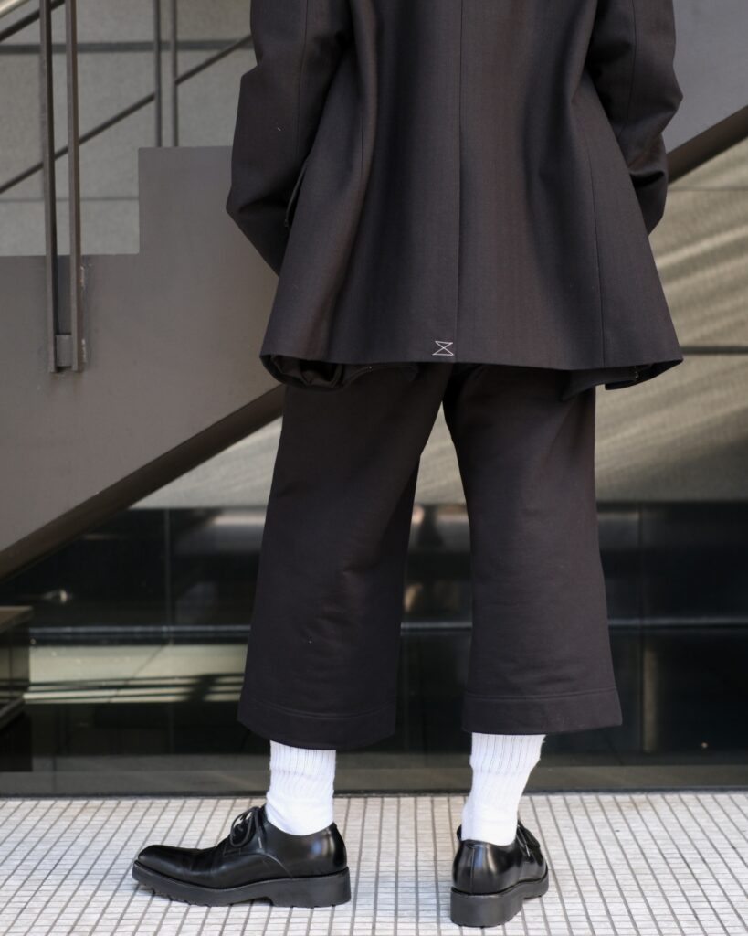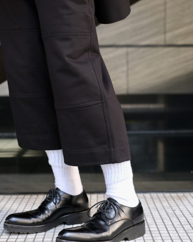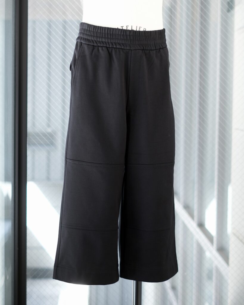 ハンパ丈のスウェットパンツ。