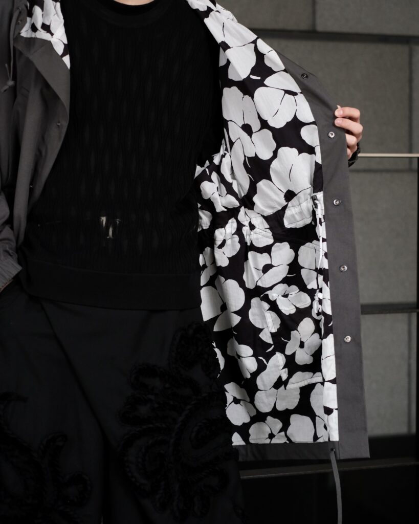 裏地のボタニカル生地との対比が素晴らしいです。