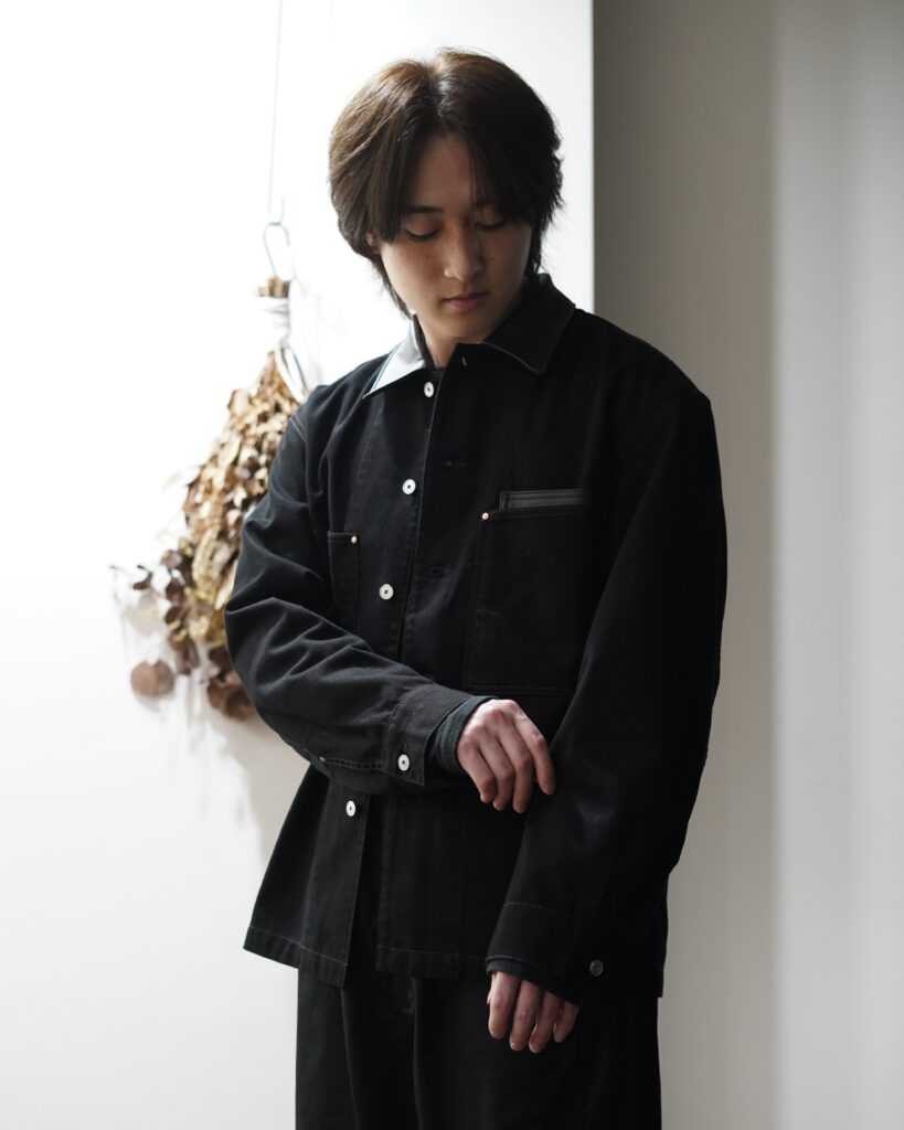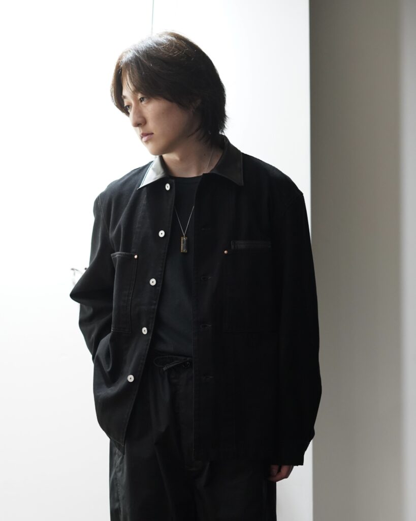 WORKWEAR OVERSHIRT WITH LEATHER COLLAR