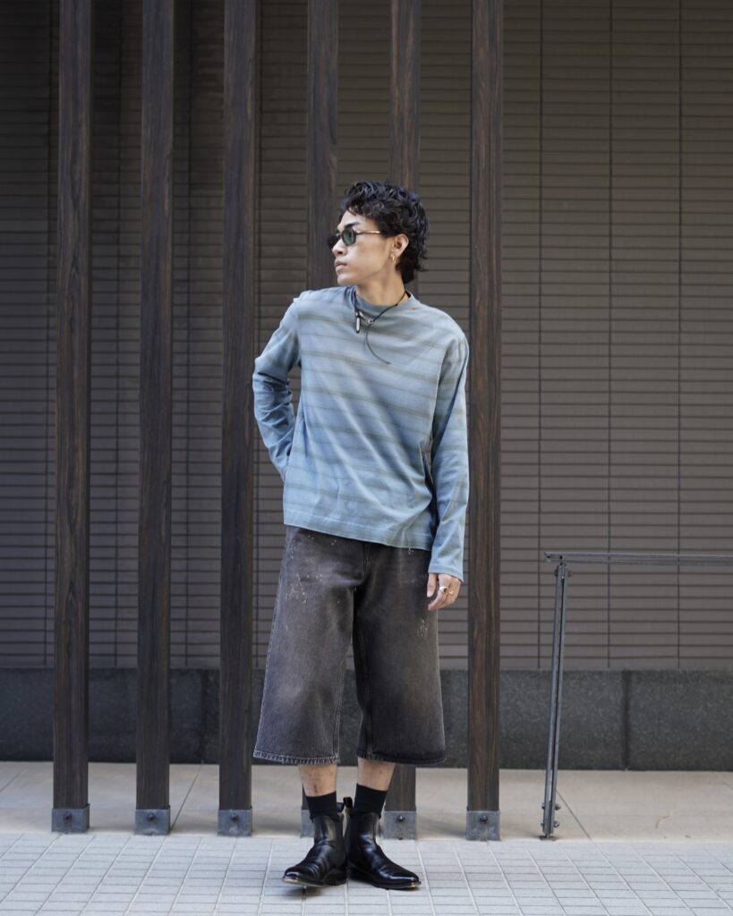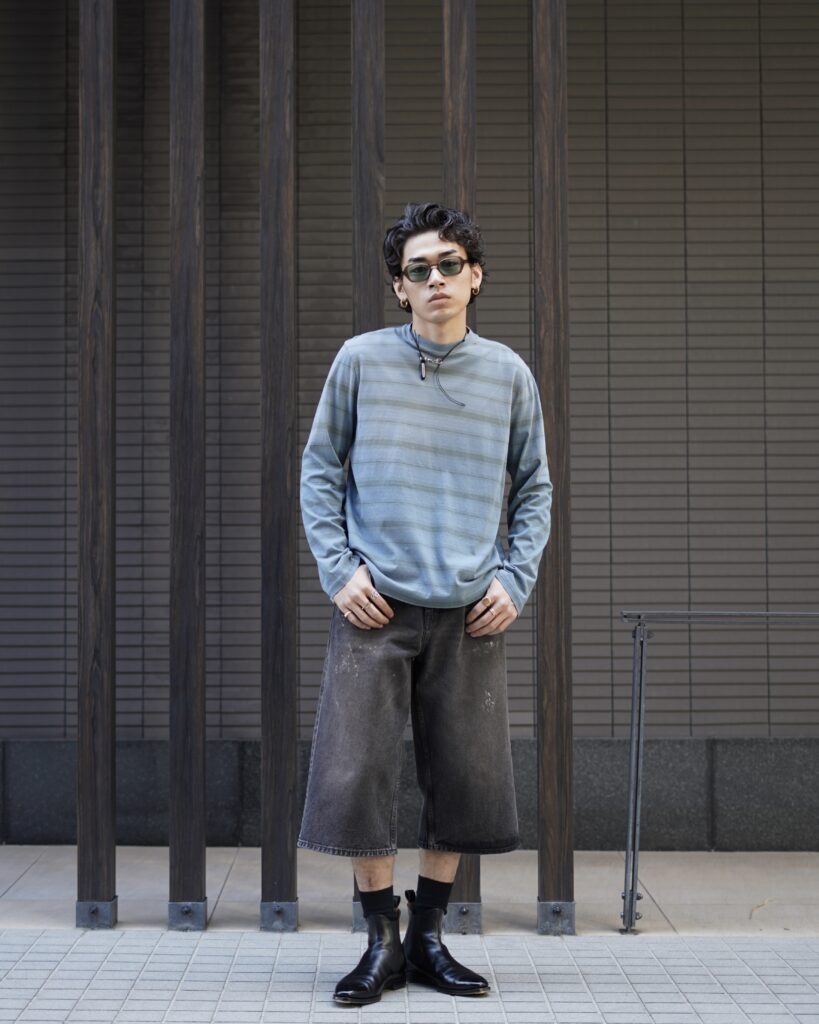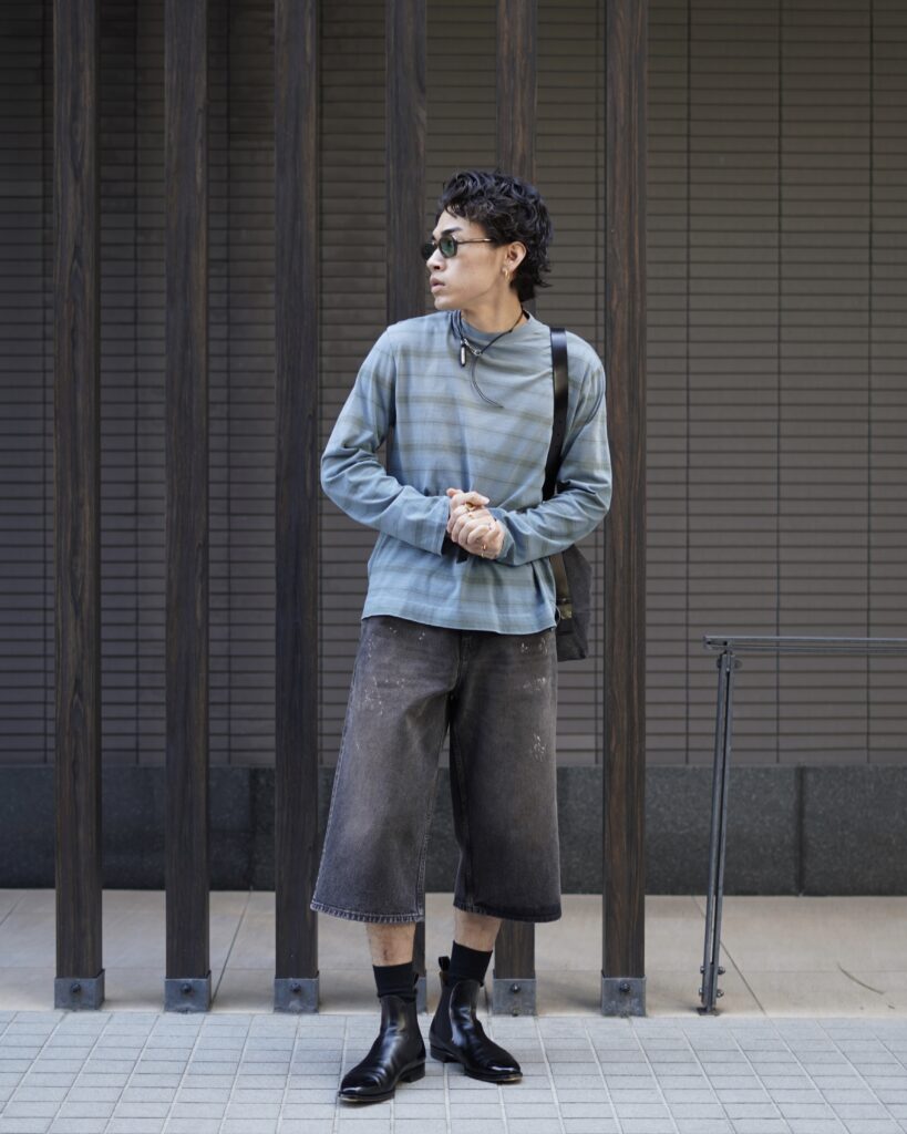 着丈がやや短めでパンツが太くてもしっかり成立するバランス。。