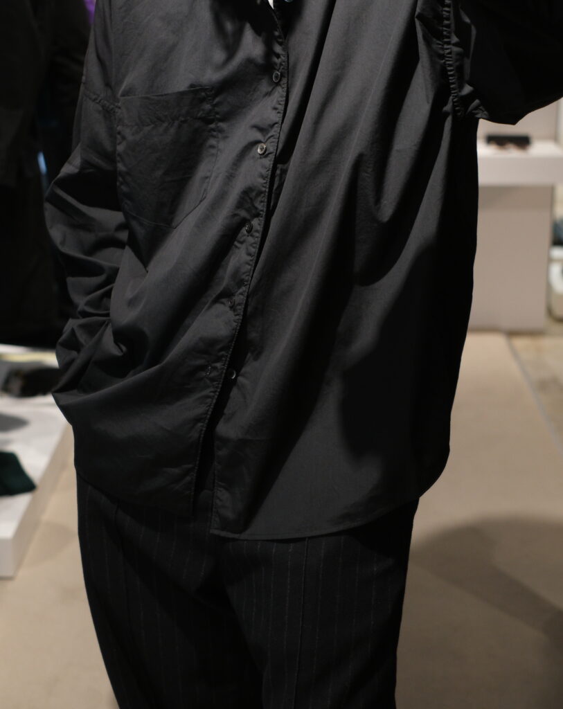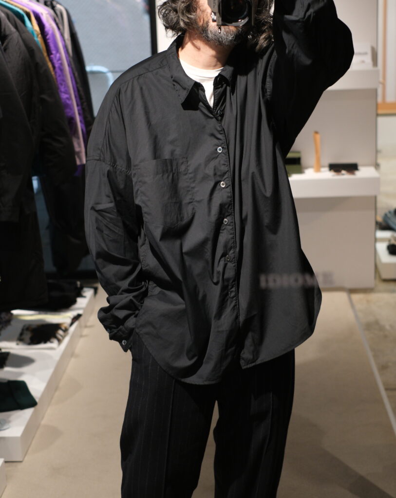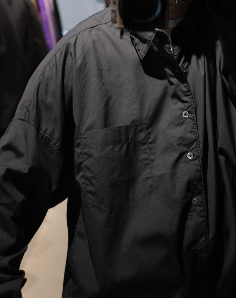 ベーシックなドレスシャツをワイドシルエットで仕立てたスタンダードシャツ。